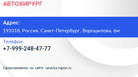 АВТОХИРУРГ по адресу 193318, Россия, Санкт-Петербург, Ворошилова, 6м в дальнейшем Организация, размещена в следующих категориях: