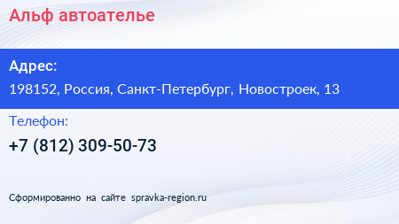 Альф, автоателье по адресу 198152, Россия, Санкт-Петербург, Новостроек, 13 в дальнейшем Организация, размещена в следующих категориях: