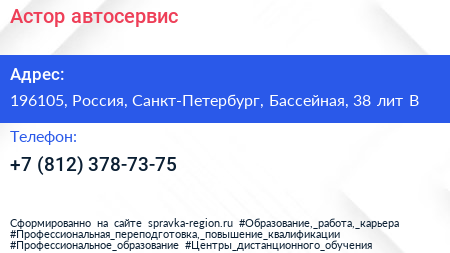 Астор, автосервис по адресу 196105, Россия, Санкт-Петербург, Бассейная, 38 лит В в дальнейшем Организация, размещена в следующих категориях: