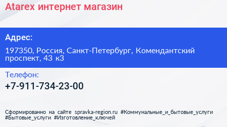 Atarex, интернет-магазин по адресу 197350, Россия, Санкт-Петербург, Комендантский проспект, 43 к3 в дальнейшем Организация, размещена в следующих категориях: