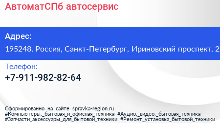 АвтоматСПб, автосервис по адресу 195248, Россия, Санкт-Петербург, Ириновский проспект, 2 в дальнейшем Организация, размещена в следующих категориях: