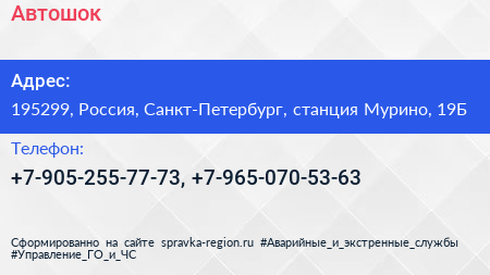 Автошок по адресу 195299, Россия, Санкт-Петербург, станция Мурино, 19Б в дальнейшем Организация, размещена в следующих категориях: