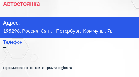 Автостоянка по адресу 195298, Россия, Санкт-Петербург, Коммуны, 7в в дальнейшем Организация, размещена в следующих категориях: