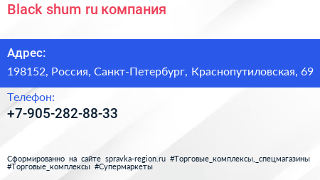Black-shum.ru, компания по адресу 198152, Россия, Санкт-Петербург, Краснопутиловская, 69 в дальнейшем Организация, размещена в следующих категориях: