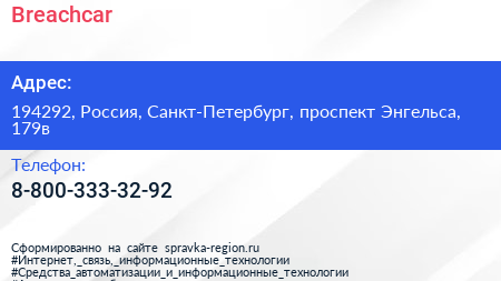 Breachcar по адресу 194292, Россия, Санкт-Петербург, проспект Энгельса, 179в в дальнейшем Организация, размещена в следующих категориях: