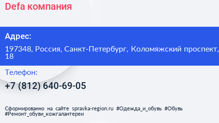 Defa, компания по адресу 197348, Россия, Санкт-Петербург, Коломяжский проспект, 18 в дальнейшем Организация, размещена в следующих категориях: