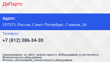 ДиПартс по адресу 197375, Россия, Санкт-Петербург, Главная, 26 в дальнейшем Организация, размещена в следующих категориях: