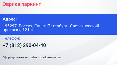 Эврика, паркинг по адресу 195297, Россия, Санкт-Петербург, Светлановский проспект, 121 к1 в дальнейшем Организация, размещена в следующих категориях: