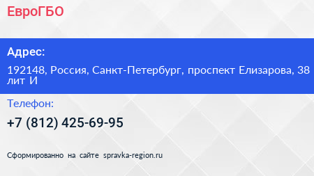 ЕвроГБО по адресу 192148, Россия, Санкт-Петербург, проспект Елизарова, 38 лит И в дальнейшем Организация, размещена в следующих категориях: