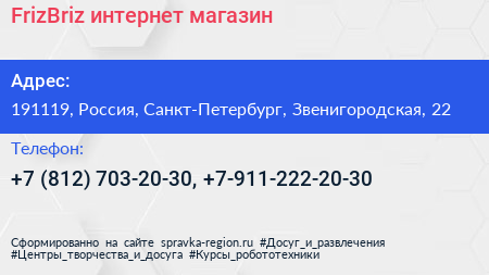 FrizBriz, интернет-магазин по адресу 191119, Россия, Санкт-Петербург, Звенигородская, 22 в дальнейшем Организация, размещена в следующих категориях: