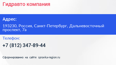 Гидравто, компания по адресу 193230, Россия, Санкт-Петербург, Дальневосточный проспект, 7а в дальнейшем Организация, размещена в следующих категориях: