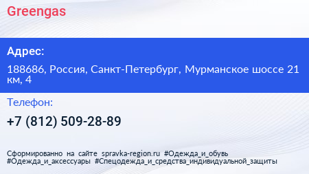 Greengas по адресу 188686, Россия, Санкт-Петербург, Мурманское шоссе 21 км, 4 в дальнейшем Организация, размещена в следующих категориях: