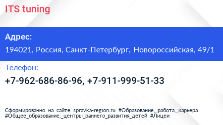ITS tuning по адресу 194021, Россия, Санкт-Петербург, Новороссийская, 49/1 в дальнейшем Организация, размещена в следующих категориях: