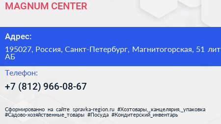 MAGNUM-CENTER по адресу 195027, Россия, Санкт-Петербург, Магнитогорская, 51 лит АБ в дальнейшем Организация, размещена в следующих категориях: