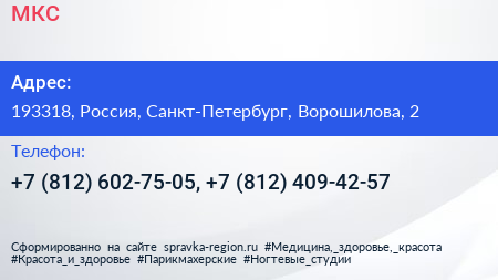 МКС по адресу 193318, Россия, Санкт-Петербург, Ворошилова, 2 в дальнейшем Организация, размещена в следующих категориях: