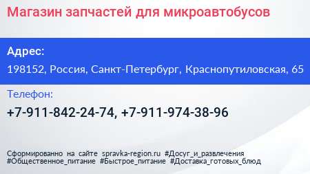 Магазин запчастей для микроавтобусов по адресу 198152, Россия, Санкт-Петербург, Краснопутиловская, 65 в дальнейшем Организация, размещена в следующих категориях: