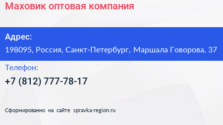 Маховик, оптовая компания по адресу 198095, Россия, Санкт-Петербург, Маршала Говорова, 37 в дальнейшем Организация, размещена в следующих категориях: