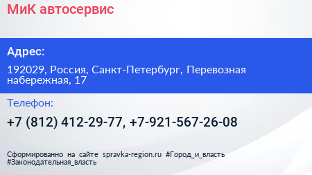 МиК, автосервис по адресу 192029, Россия, Санкт-Петербург, Перевозная набережная, 17 в дальнейшем Организация, размещена в следующих категориях: