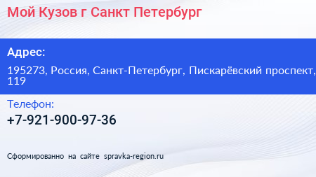 Мой Кузов, г. Санкт-Петербург по адресу 195273, Россия, Санкт-Петербург, Пискарёвский проспект, 119 в дальнейшем Организация, размещена в следующих категориях: