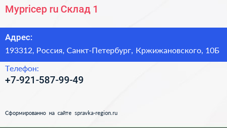Mypricep.ru Склад №1 по адресу 193312, Россия, Санкт-Петербург, Кржижановского, 10Б в дальнейшем Организация, размещена в следующих категориях: