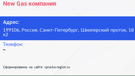 New Gas, компания по адресу 199106, Россия, Санкт-Петербург, Шкиперский проток, 18 к2 в дальнейшем Организация, размещена в следующих категориях: