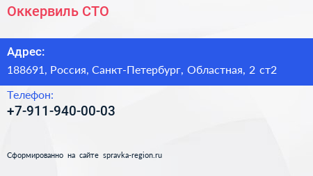 Оккервиль, СТО по адресу 188691, Россия, Санкт-Петербург, Областная, 2 ст2 в дальнейшем Организация, размещена в следующих категориях: