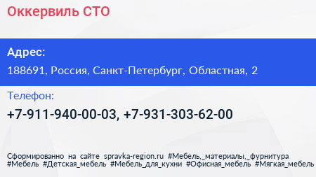 Оккервиль, СТО по адресу 188691, Россия, Санкт-Петербург, Областная, 2 в дальнейшем Организация, размещена в следующих категориях: