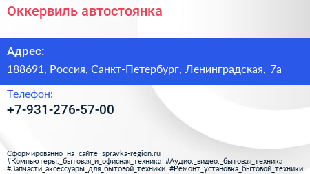 Оккервиль, автостоянка по адресу 188691, Россия, Санкт-Петербург, Ленинградская, 7а в дальнейшем Организация, размещена в следующих категориях: