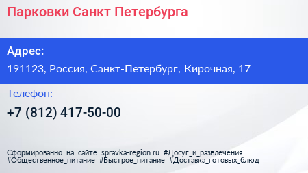 Парковки Санкт-Петербурга по адресу 191123, Россия, Санкт-Петербург, Кирочная, 17 в дальнейшем Организация, размещена в следующих категориях: