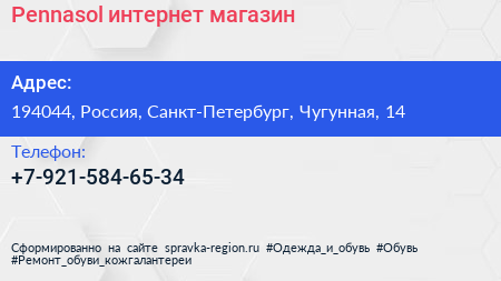 Pennasol, интернет-магазин по адресу 194044, Россия, Санкт-Петербург, Чугунная, 14 в дальнейшем Организация, размещена в следующих категориях: