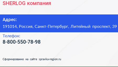 SHERLOG, компания по адресу 191014, Россия, Санкт-Петербург, Литейный проспект, 39 в дальнейшем Организация, размещена в следующих категориях: