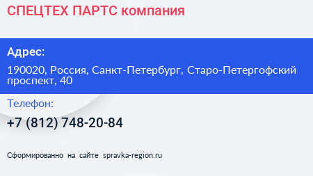 СПЕЦТЕХ-ПАРТС, компания по адресу 190020, Россия, Санкт-Петербург, Старо-Петергофский проспект, 40 в дальнейшем Организация, размещена в следующих категориях: