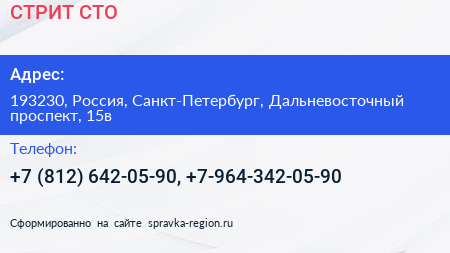 СТРИТ, СТО по адресу 193230, Россия, Санкт-Петербург, Дальневосточный проспект, 15в в дальнейшем Организация, размещена в следующих категориях: