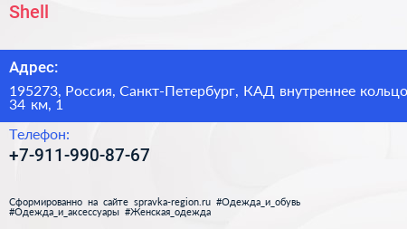 Shell по адресу 195273, Россия, Санкт-Петербург, КАД внутреннее кольцо 34 км, 1 в дальнейшем Организация, размещена в следующих категориях: