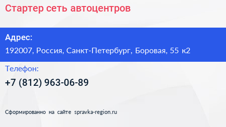 Стартер, сеть автоцентров по адресу 192007, Россия, Санкт-Петербург, Боровая, 55 к2 в дальнейшем Организация, размещена в следующих категориях: