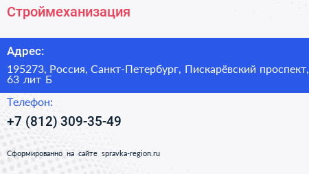 Строймеханизация по адресу 195273, Россия, Санкт-Петербург, Пискарёвский проспект, 63 лит Б в дальнейшем Организация, размещена в следующих категориях: