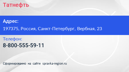 Татнефть по адресу 197375, Россия, Санкт-Петербург, Вербная, 23 в дальнейшем Организация, размещена в следующих категориях: