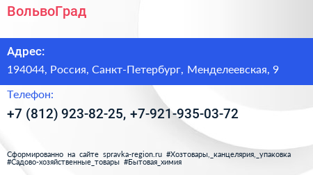 ВольвоГрад по адресу 194044, Россия, Санкт-Петербург, Менделеевская, 9 в дальнейшем Организация, размещена в следующих категориях:
