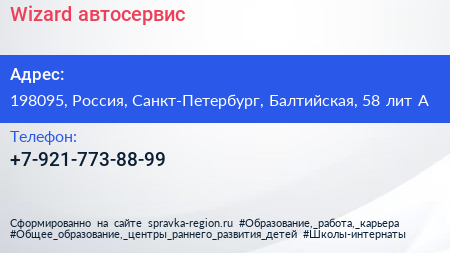 Wizard, автосервис по адресу 198095, Россия, Санкт-Петербург, Балтийская, 58 лит А в дальнейшем Организация, размещена в следующих категориях: