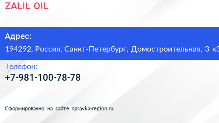 ZALIL OIL по адресу 194292, Россия, Санкт-Петербург, Домостроительная, 3 к3 в дальнейшем Организация, размещена в следующих категориях:
