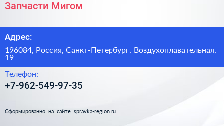 Запчасти Мигом по адресу 196084, Россия, Санкт-Петербург, Воздухоплавательная, 19 в дальнейшем Организация, размещена в следующих категориях: