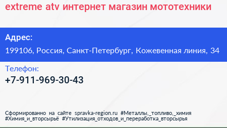 extreme-atv, интернет-магазин мототехники по адресу 199106, Россия, Санкт-Петербург, Кожевенная линия, 34 в дальнейшем Организация, размещена в следующих категориях: