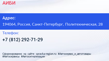 АИБИ по адресу 194064, Россия, Санкт-Петербург, Политехническая, 28 в дальнейшем Организация, размещена в следующих категориях: