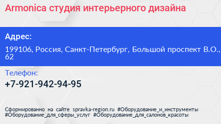 Armonica, студия интерьерного дизайна по адресу 199106, Россия, Санкт-Петербург, Большой проспект В.О., 62 в дальнейшем Организация, размещена в следующих категориях: