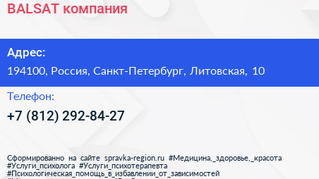 BALSAT, компания по адресу 194100, Россия, Санкт-Петербург, Литовская, 10 в дальнейшем Организация, размещена в следующих категориях:
