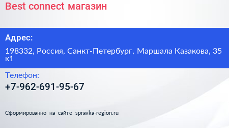 Best connect, магазин по адресу 198332, Россия, Санкт-Петербург, Маршала Казакова, 35 к1 в дальнейшем Организация, размещена в следующих категориях: