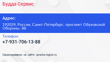 Будда Сервис по адресу 192029, Россия, Санкт-Петербург, проспект Обуховской Обороны, 88 в дальнейшем Организация, размещена в следующих категориях: