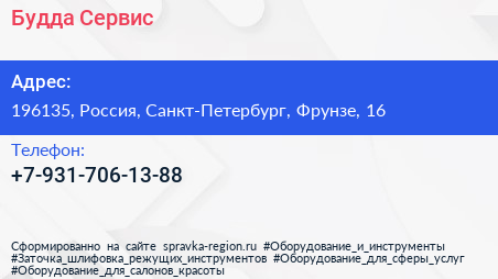 Будда Сервис по адресу 196135, Россия, Санкт-Петербург, Фрунзе, 16 в дальнейшем Организация, размещена в следующих категориях: