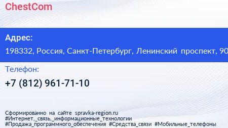 ChestCom по адресу 198332, Россия, Санкт-Петербург, Ленинский проспект, 90 в дальнейшем Организация, размещена в следующих категориях: