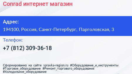 Conrad, интернет-магазин по адресу 194100, Россия, Санкт-Петербург, Парголовская, 3 в дальнейшем Организация, размещена в следующих категориях: